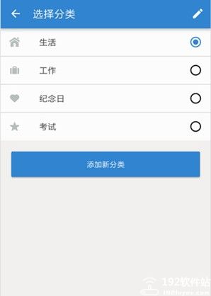 3、设置好分类,这里提供多个类别,生活、工作和纪念日等;