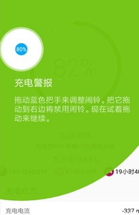 2、软件提供设置充电警报功能,用户在“充电中”页面,拖动设置蓝色按钮,完成闹钟警报的设置;