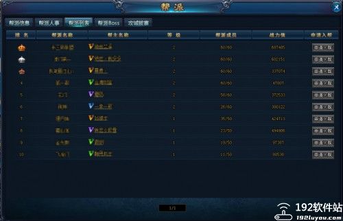 1、玩家未加入帮派时,可以看到一个本服当前所有帮派的列表