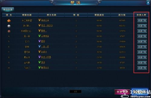 点击帮派项右侧的【申请入帮】,可以申请加入所选帮派