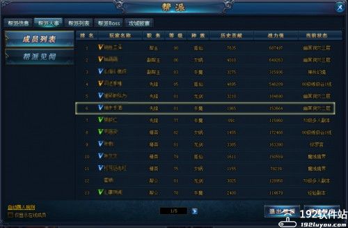 1、如图所示,在此界面可以查看当前帮派的成员信息。