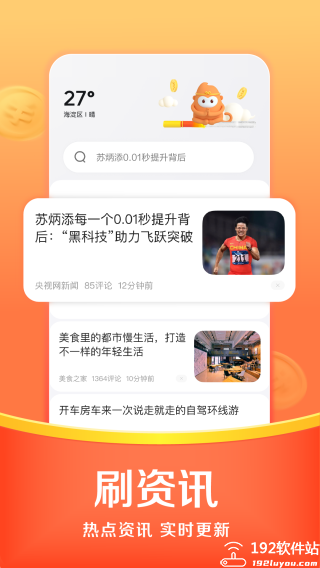 3、【新鲜资讯】实时热点、体育财经、娱乐资讯,不出家门就能看遍天下事。