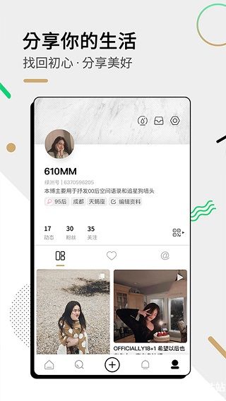 3、记录下最真实的你,分享生活中的点滴,在这里可以轻松交友。