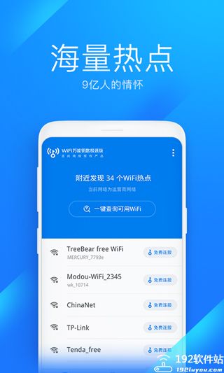 2、便捷操作: 点击一键查询,秒速发现WiFi热点,无需查找WiFi密码,无需WiFi密码查看器,一键为您自动下发安全WiFi热点密码,非暴力破解WiFi密码,操作便捷。