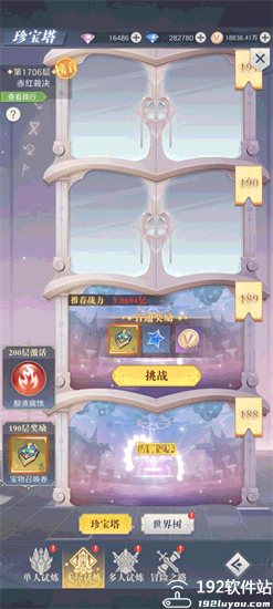 介绍:珍宝塔需要逐层挑战,层数越高要求玩家战力越大才能通关