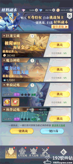 3、试炼副本,养成资源多多,单人爬塔,挑战全服最强,组队挑战,无惧噩梦模式;