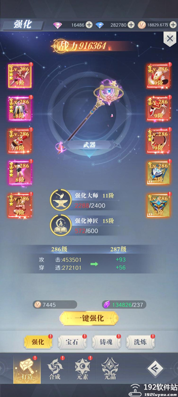 4、装备铸魂也很重要,同样是消耗相应的材料便可提升铸魂石。