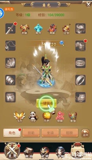 2、跟着游戏任务,点击一键装备,可以提高你的属性;