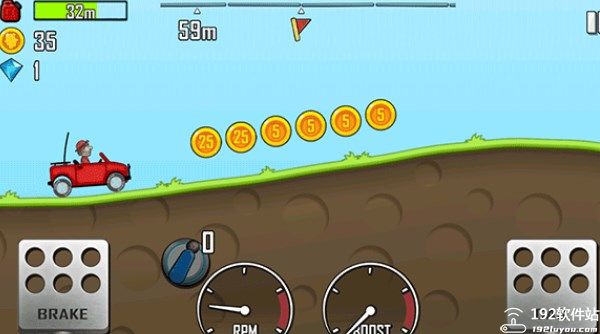 4、升级发动机时会发出真正涡轮的声音!趣味平衡类游戏,游戏全程就是一位面无表情的大叔开着销魂的红色汽车在各种崎岖的路上前行。
