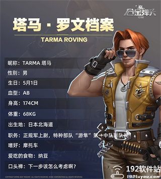 塔马出生于一个军事家庭,他的父亲是一位优秀的军人,因此塔马从小也在父亲的军事理论和技巧的熏陶下成长,在高中毕业过后,进入了军事学校的特殊战略科,在此之后也是作为一名政府军人执行任务,在一次保护总统的任务中,他与马可相遇合作执行任务,不料在完成任务过后却遭到了报复性的爆炸攻击,而正是因为他与马可的相互合作才突出重围,此后两人便成为朋友。