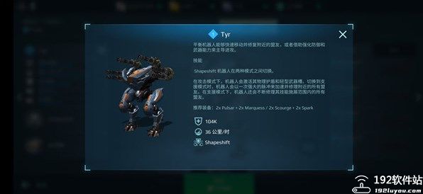 这款机器人则在灵活体系上高出很多,因为其自带一个跳跃技能并且cd很短,基本在落地的时候就能再次跳起来,他的作用在于骚扰,因为作为一个可以自由飞跃地形的机器人,在山图或者星际图上,他可以从侧面绕后来进行攻击,虽说在伤害上这个角色并不高,但是因为其血量值是所有机器人中最低的,所以骚扰也成为了该型号机器的必要点(需要多练哟)小编因为是比较刚的一类人,所以不适合玩这种的。