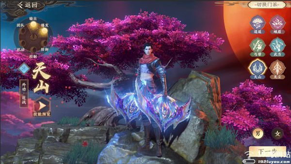 游戏中天山是一个刺客类型的职业门派,拥有极强的爆发能力,可以轻松秒杀各种脆皮、残血的目标,因此在PK场中属于绝对王者。但她培养难度较高,对装备的需求也较高,所以不建议平民玩家进行选择。