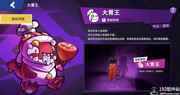 1、大胃王:淘汰所有人后获胜,你可以将他人吃进肚子里。简单粗暴的身份,可以和其他阵营直接对抗。