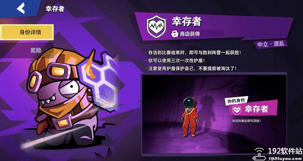 4、幸存者:活到场上人数(包括幸存者)剩余3人时获胜,可以使用一次性护盾,抵御一次伤害,获胜较易。