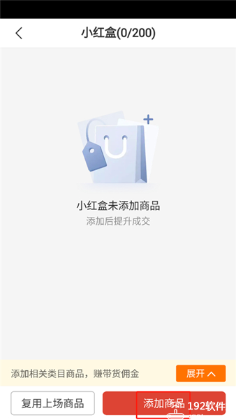 3、点击小红盒后可以进行商品的添加;