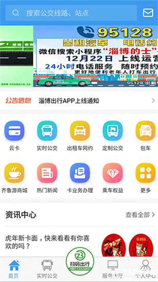 淄博出行app官方版是一款专门为在淄博的朋友制作的一款便捷出行软件,随着现在淄博烧烤火遍大江南北越来越多的旅客都回去打卡,而这款软件就可以帮助大家带淄博带来很方便的出行服务,在软件中有实时公交车、网约出租车、包车多种出行方式,通过点击查看班次可以详细的查看每一班车辆的到站点和出发时间,还会为提地图导航为你推荐离你最近的公交站台,通过云卡功能上车后可以直接扫码支付,遇到没有零钱的情况也可以轻松解决。该软件也会为用户带来当下热门的资讯新闻,了解淄博当地的人文风俗,打卡诸多热门的景点,尝遍诸多淄博美食。以及线上营业厅功能可以在线充值交通卡、查询订单、办理服务等一系列的便捷服务,如果需要去淄博游玩的朋友来下载该软件为你提供帮助。