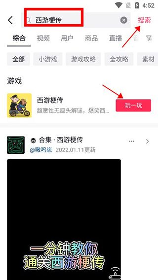 2、弹出游戏小条目之后,点击玩一玩就好了,不需要下载;