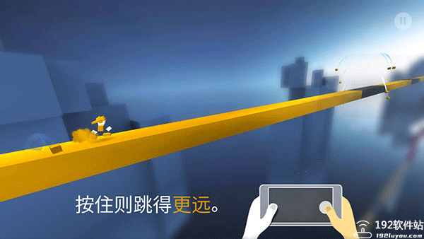2、持续按住右屏幕可以使跳跃距离更远