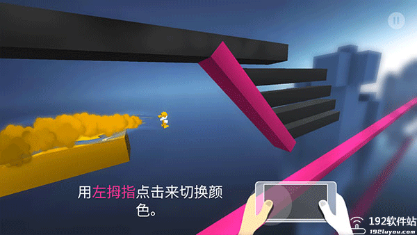 1、一只手点击来变换颜色,一只手点击来跳跃。