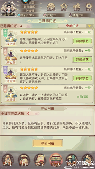 为什么要加入门派呢?玩家只有加入门派后,才可在藏经阁中学习功法和法术,提升自身实力其中玄功阁中可学习各种功法,玄术阁中可学习各种法术。