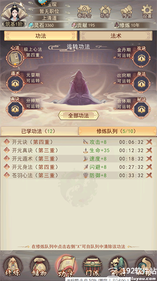 学习并修炼功法是最主要的属性获取方式,在聚灵阵中升级灵根可进一步加强功法效果。