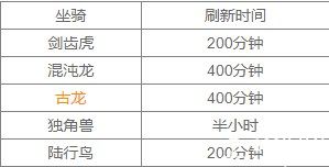 2、时间解锁:在上面为大家列出的坐骑刷新时间,可能在这次的时候你没有获取到,那么就再等等吧!
