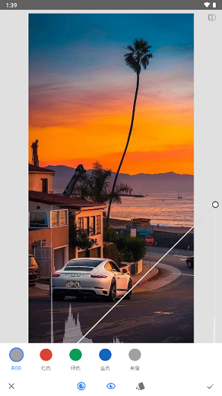借助直方图来确定合适的图片曝光。点按主屏幕左下角的图标打开直方图,或点按图表将其最小化。直方图会一直显示在调整图片工具中,可用作曝光调整指南。