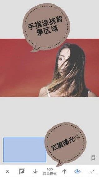7、把双重曝光设置成100,用手指涂抹背景区域;