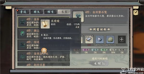 3、根据材料的种类等级不同可以制作普通、精良、稀有、名器这四种类别。而相同的材料根据不同的品质类型有概率会生产出不同品质的装备。
