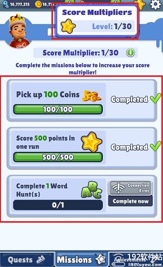 点击“任务中心”会看到分数等级任务,完成分数等级任务的三个子任务即可升级等级即提升倍数