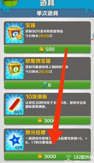 2、第二种方法就是进入到游戏的商店,点击道具,找到得分倍增,把这个道具购买,就能在短时间内提升倍数;