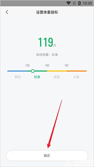 4、完成后点击确实即可完成设置,之后每天都可以通过运动手环来查看体重的变化情况。