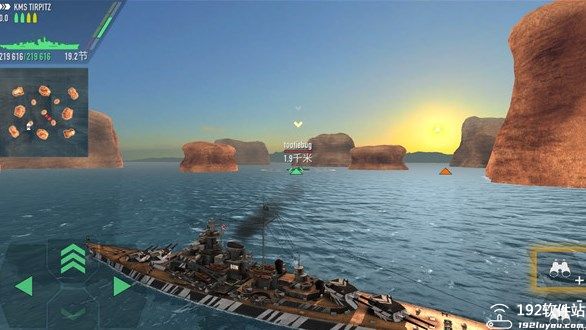 2、进入到圆环后,继续学习消灭敌舰,先点击右下角的望远镜;