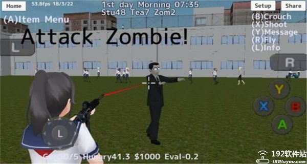 捡起武器以及扔掉武器,包括篮球、自行车、猫型帽子(其实就是飞行器)、以及各种武器(都在学校门口处放着)。