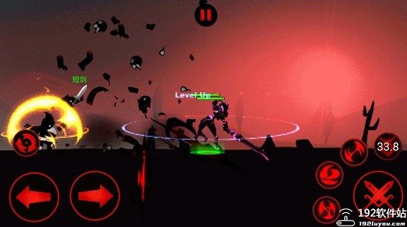 用更为华丽的特效取代了传统火柴人模式下的夸张动作设计,值得一提的是,这款游戏不管是人物还是技能,都极大程度的仿照了时下全球最火热的竞技游戏英雄联盟,QWER恰如其分的被围绕在普通攻击的按键 周围,满足了玩家对于这类