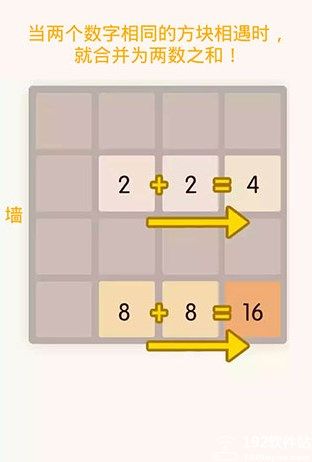 2、要是两个相同数字方块相遇,将其合并成一个新的数字,就是两个数字之和;