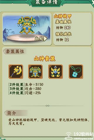和紫色套装一样,金色套装也分为输出类和防御类,分别是山神套装和七彩套装,而且这两套的武器都是除了小蝴蝶和小金刚以外的最好的输出类角色和坦克类角色的缘分武器,建议获得后建议优先装备给所在阵容的主力以提升主力角色的能力。