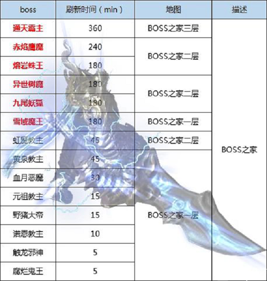 Boss之家一层的Boss基本适用于前期过度,主要是为了帮贡的积累以及前期藏品的收集,唯一值得关注的BOSS雪域魔王也需要大家一起抱团才能在前期完成击杀
