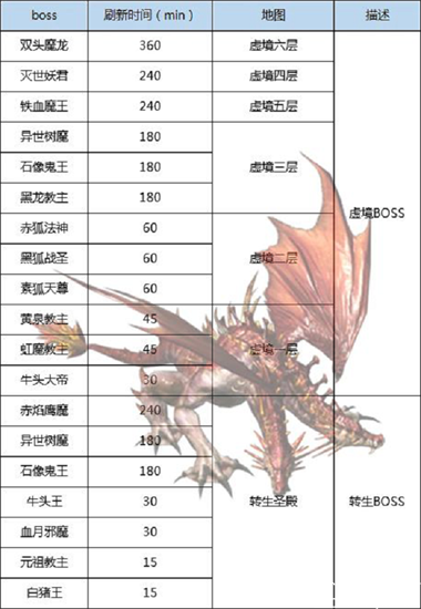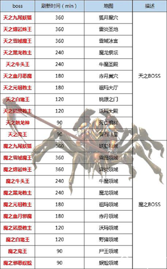 天之boss与魔之Boss相比较于普通的Boss,掉落可以说是又好又多。所以刷新时间一定要牢记!此外,魔之Boss的入口基本都在野外地图的第二层的NPC处进入,是有进入条件的,不同boss进入条件不同,而天之Boss则需要在该地图击杀小怪掉落凭证后,进入第三层NPC处传送。所以,前期挂机刷怪不仅仅是为了刷内功,同时也可以刷凭证哦~最后在啰嗦一句,前期一定要分秒必争哦!战力差距就是这么拉开的!