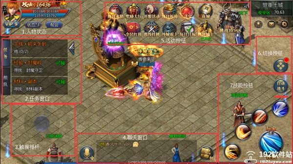 7、技能按钮:操作游戏中角色技能的快捷按钮,点击即可施放技能。