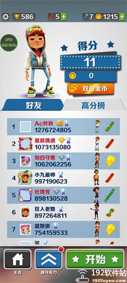 地铁跑酷闲树之城内购版是一款刺激的跑酷手游,但本次带来的版本与以往的有所不同,在场景画面上采用现代都市为两侧的风景,并以绿色元素绘制完美的呈现了闲树之城的主题。在游戏玩法上还是沿用了经典触屏滑动操作方式,在铁轨上会出许多的金币等你来收集,同时还需要诸多躲避迎面而来火车,更有跳跃、滑铲的方式来躲避障碍物,倘若玩家不小心碰到障碍物就会摔倒降低速度,后面追捕的人就会越来越近,因此玩家要尽量的减少失误。另外也可以借助游戏道具帮助你进行飞跃一段距离,惊心动魄的闯关玩法让玩家乐此不疲,更有着跑酷排行榜会根据每位玩家最远的记录进行排行上榜。地铁跑酷闲树之城游戏内更有着丰富多彩的角色时装可以购买,打造出一个全新形象的跑酷小子。