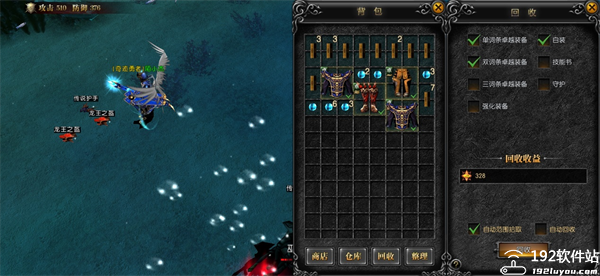 背包中有装备回收功能,白装能回收金币,普通卓越装备能回收奇迹币(流通货币),技能书能回收成技能碎片,用技能碎片可以合成高级装备。