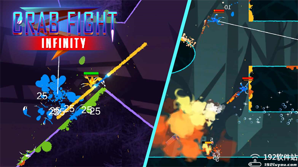 1、在物理模拟中操作移动螃蟹,令对手先反转倒下就赢了,这是游戏特定规则的竞技动作游戏。