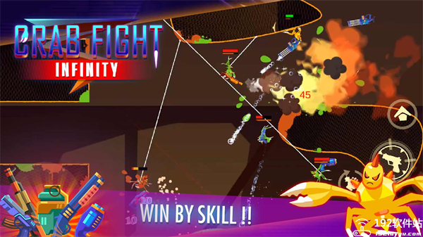 4、主角是各种各样的螃蟹,你需要操控螃蟹使用各种武器进行对战闯关,题材新颖非常值得尝试。