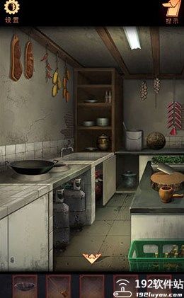 2、根据右侧绿窗红窗花顺序,来到【场景4】,解锁水壶下柜子密码,拿到【油勺】。
