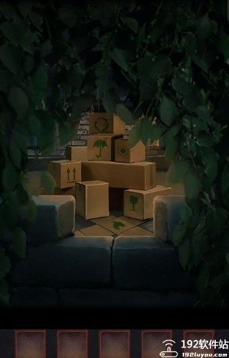 21、点击墙上的漏洞,查看院子里摆放的纸箱子上的图案的位置(有小高能)(火苗:1、酒杯:2、箭头:3、雨伞:4、太阳:4、循环符号:5)