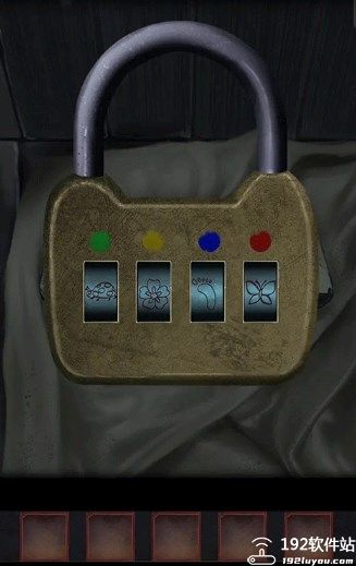 10、点击床上的文具盒,根据上面的颜色和挂历、窗户及镜子上的图案的颜色,调整盒子上的锁(绿色瓢虫、黄色、蓝色脚印、红色蝴蝶)