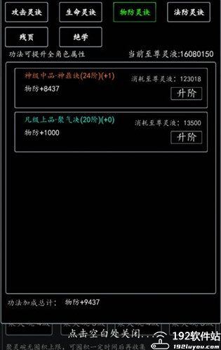 在商店购买功法,在背包使用后可以提升全角色属性,升级强化功法需要消耗一定数量的至尊灵液。