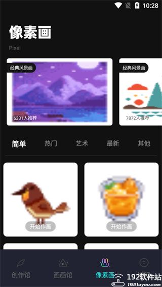 3、没有画画基础的玩家,可以选择像素填色板块,进行简单的绘画;