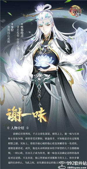 前朝后宫皆利用,千古文章化深谋。朝堂之上,谢一味与长孙怀止处处争锋,却常常受其掣肘。棋逢敌手,不知他是否有过惺惺相惜之感。实际上,看似冷面心硬的他,心底也深藏着有一处柔软,那便是谢语花。或许他也从未料到原本给予厚望的儿子会那般痴情,一时心软,任由儿子成为侍君,谢一味也无法确定这样的选择是对还是错。不及多思,他已然要面对羽翼渐丰的主上,面对